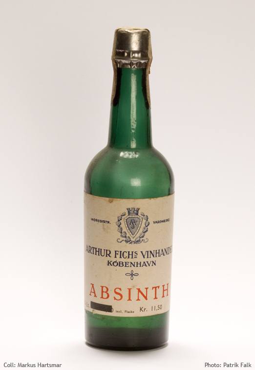 The Arthur Fich Absinth is one of several Danish absinthes produced during the 1900's. This particular one was produced by wine-merchant Arthur Fich in Copenhagen. Mr Fich started his wine and spirits business in 1916 and beside importing and selling wine and spirits he also manufactured some of his own. Among other things, he made this - an essence based absinthe. The bottle I have dates to somewhere between 1930 and 1940.