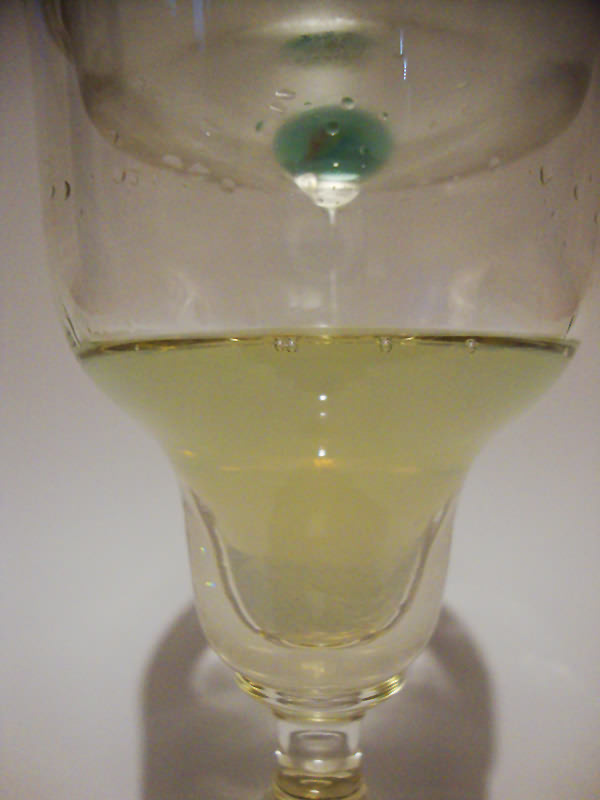 The color of the Arthur Fich Absinth is a pale light green with a faint blue hue to it. If it wasn't for that slight blue in it it would look more natural. As it is now it gets a typical artificial look to it.